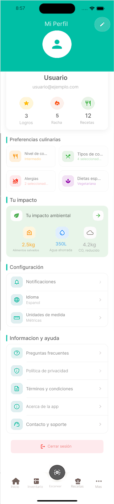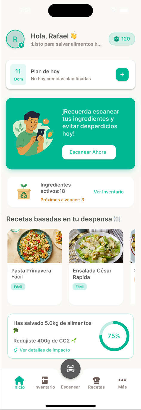 Cada año, el hogar promedio desperdicia $1,500 en alimentos mientras contribuye al 8% de las emisiones globales de gases de efecto invernadero. La planificación tradicional de comidas consume tiempo, la gestión de ingredientes es caótica, y los alimentos vencidos dañan silenciosamente tanto tu billetera como nuestro medio ambiente.